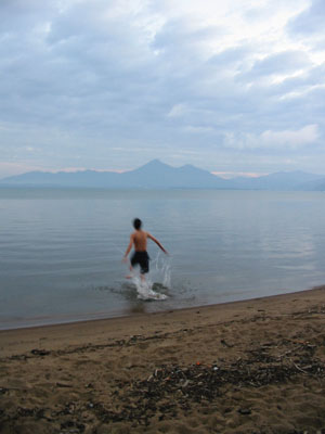 早朝5時前に湖水浴をするばか者は我々のみである